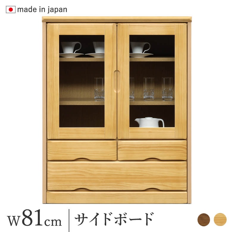 サイドボード 幅81cm キャビネット ナチュラル/ブラウン パイン材 リビングボード 完成品 日本製 木製 収納棚 食器棚 整理棚