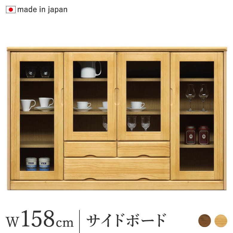 サイドボード 幅158cm キャビネット ナチュラル/ブラウン パイン材 リビングボード 完成品 日本製 木製 収納棚 食器棚 整理棚