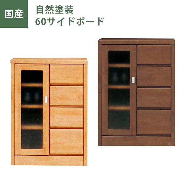 サイドボード 幅62cm 自然塗装 キャビネット リビング収納 引き出し ガラス扉 収納棚 アルダー材 ナチュラル ブラウン 木製 日本製 国産 大川家具 完成品