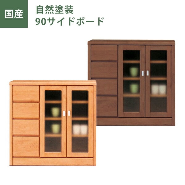 サイドボード 幅90cm リビング収納 収納家具 収納棚 整理棚 自然塗装 ナチュラル ブラウン