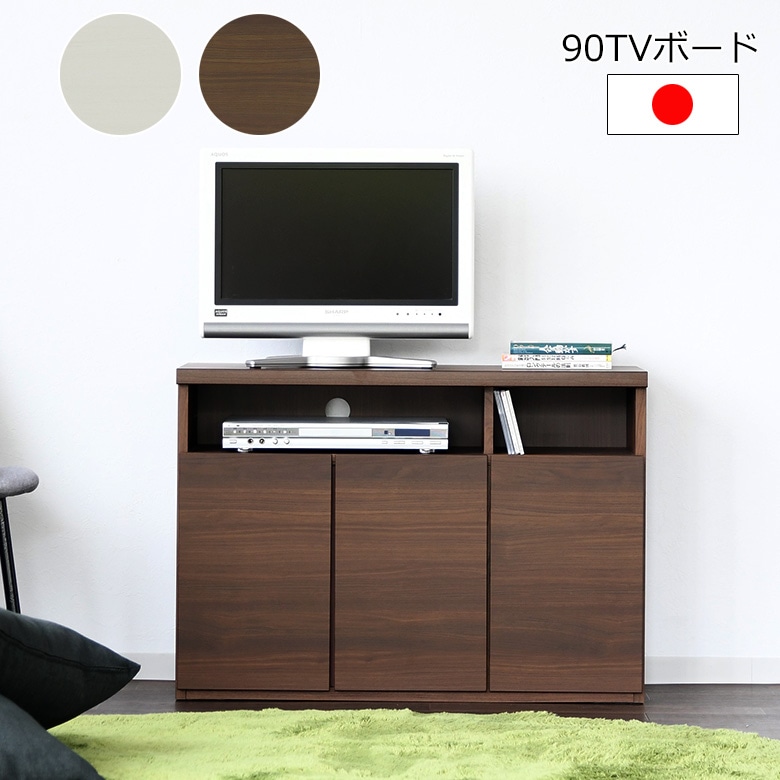 テレビボード ハイタイプ テレビ台 薄型 幅90 奥行スリム コンパクト サイドボード 収納棚 可動棚 リビング収納 ホワイト ブラウン おしゃれ 人気 完成品 日本製