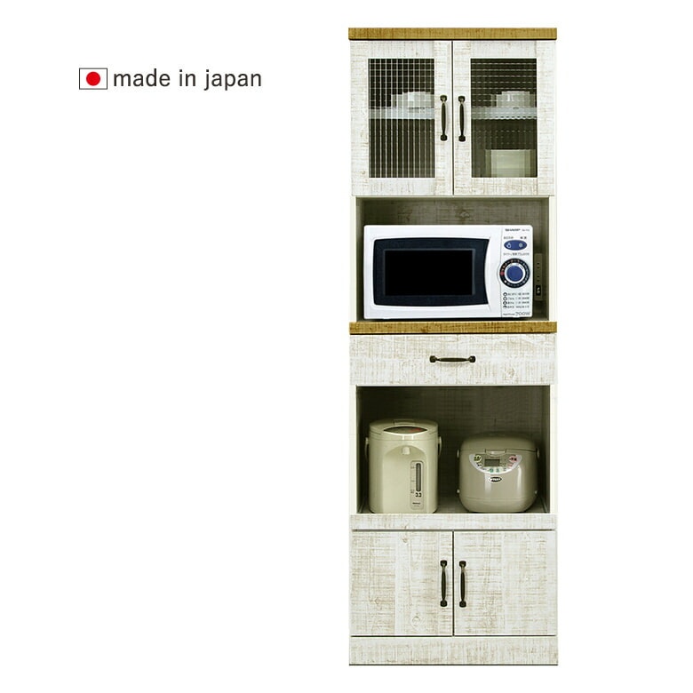 ダメージ塗装風 60レンジボード 幅60cm ホワイト 日本製 完成品 キッチン収納 ダイニングボード