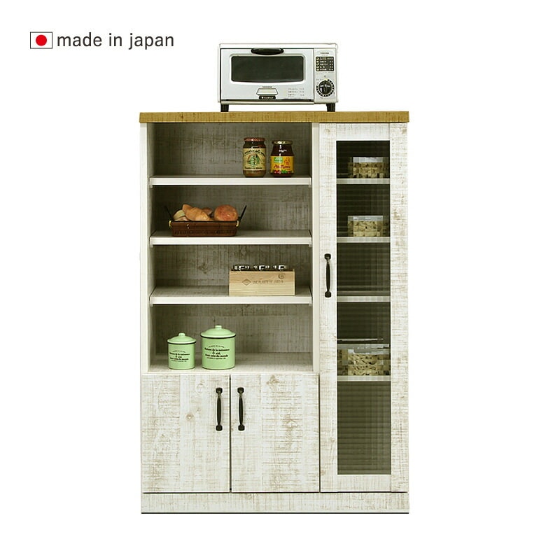 ダメージ塗装風 80多目的キャビネット 幅80cm ホワイト 日本製 完成品 キッチン収納