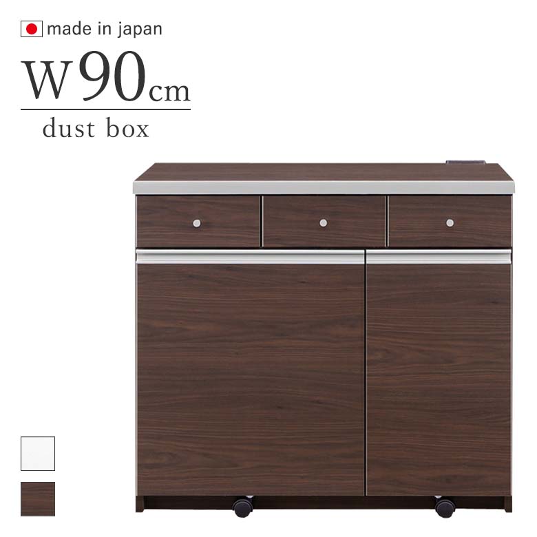 90ダストボックス キッチンカウンター 幅90cm ホワイト ブラウン ペール3個付き 日本製 完成品 ゴミ箱 ダストカウンター