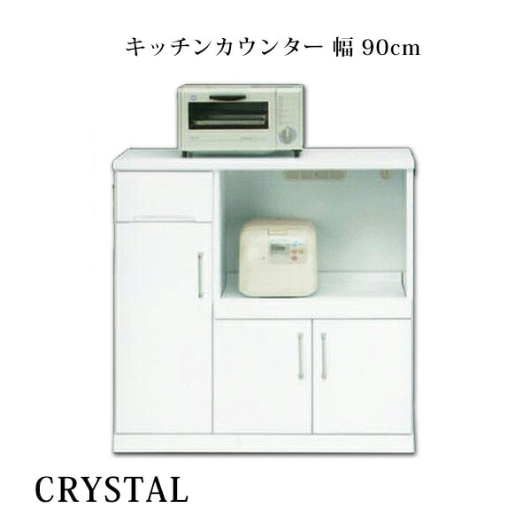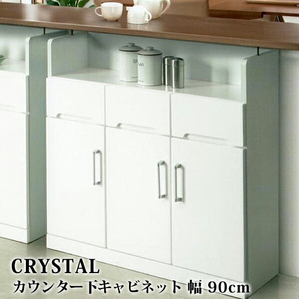 カウンター キッチン カウンター 幅90cm キャビネット 鏡面 ホワイト 国産 キッチン収納