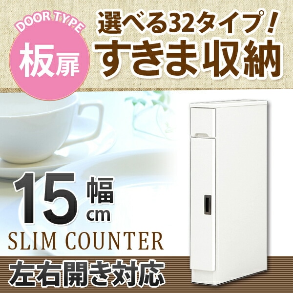 すきま収納 スリムカウンター 幅15cm キッチン収納 ランドリー収納 ホワイト エナメル塗装 開き扉 日本製 大川家具