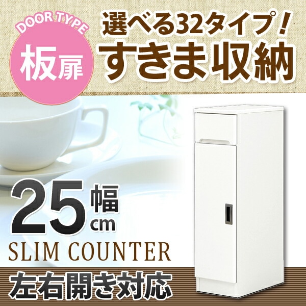 すきま収納 スリムカウンター 幅25cm キッチン収納 ランドリー収納 ホワイト エナメル塗装 開き扉 日本製 大川家具