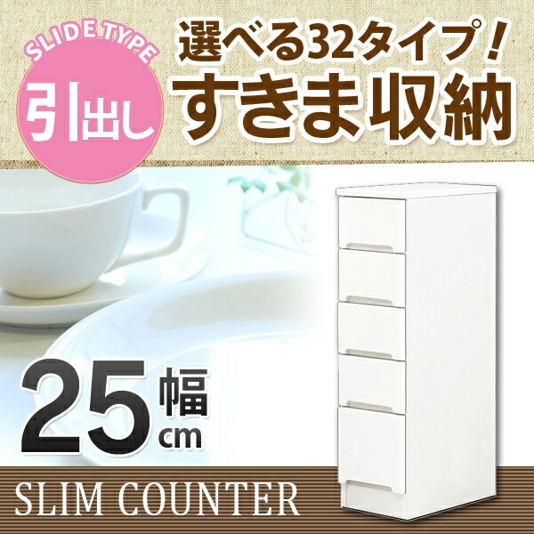 すきま収納 スリムカウンター 幅25cm キッチン収納 ランドリー収納 ホワイト エナメル塗装 引出し 日本製 大川家具