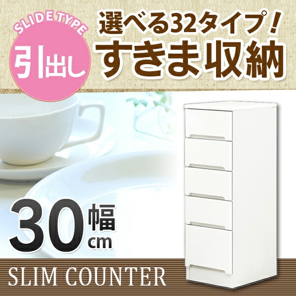 すきま収納 スリムカウンター 幅30cm キッチン収納 ランドリー収納 ホワイト エナメル塗装 引出し 日本製 大川家具