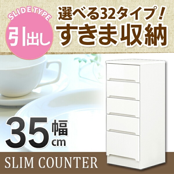 すきま収納 スリムカウンター 幅35cm キッチン収納 ランドリー収納 ホワイト エナメル塗装 引出し 日本製 大川家具