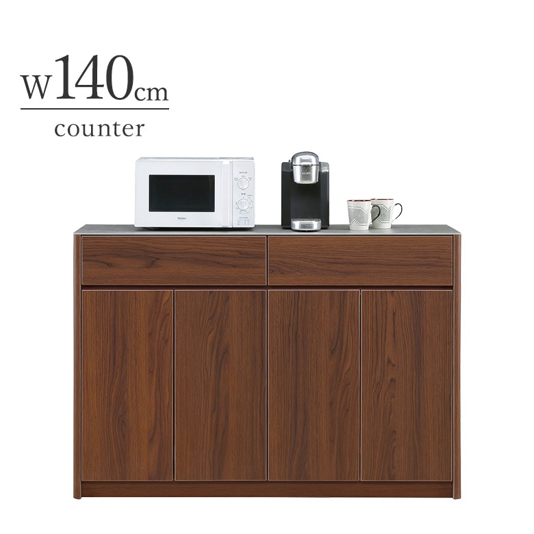 セラミック天板 140 カウンター キッチン収納 ブラウン 完成品