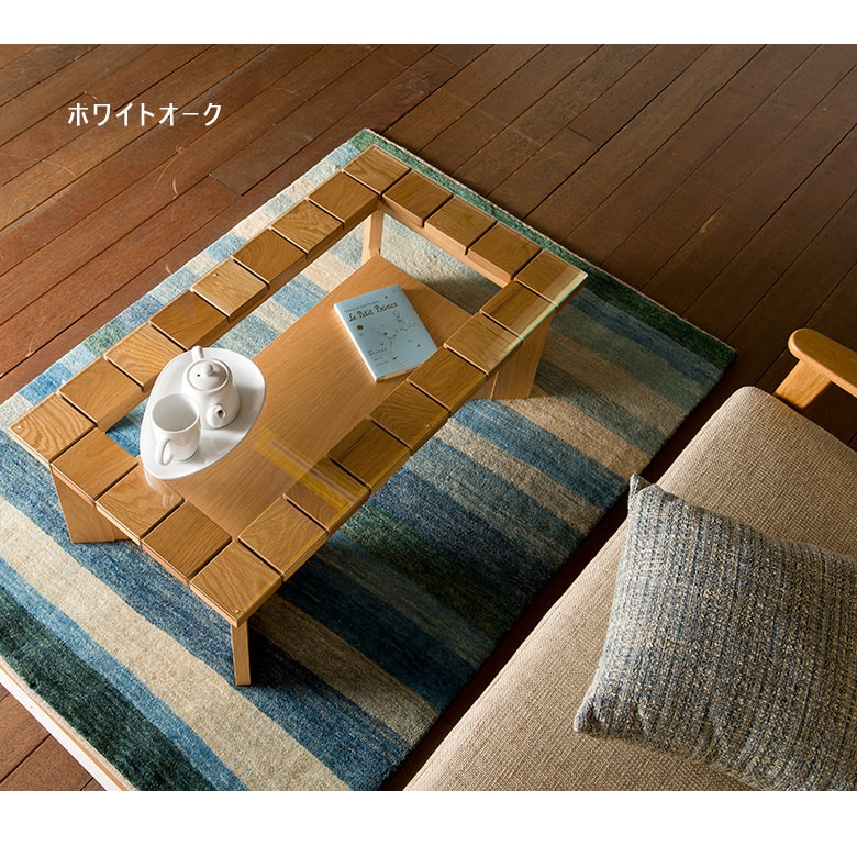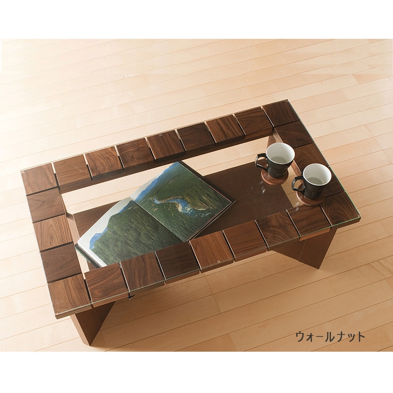 95リビングテーブル ウォールナット材 木製 棚付き 日本製 国産 【タイル風に置いた無垢材の表情がたのしい、リビングテーブル】