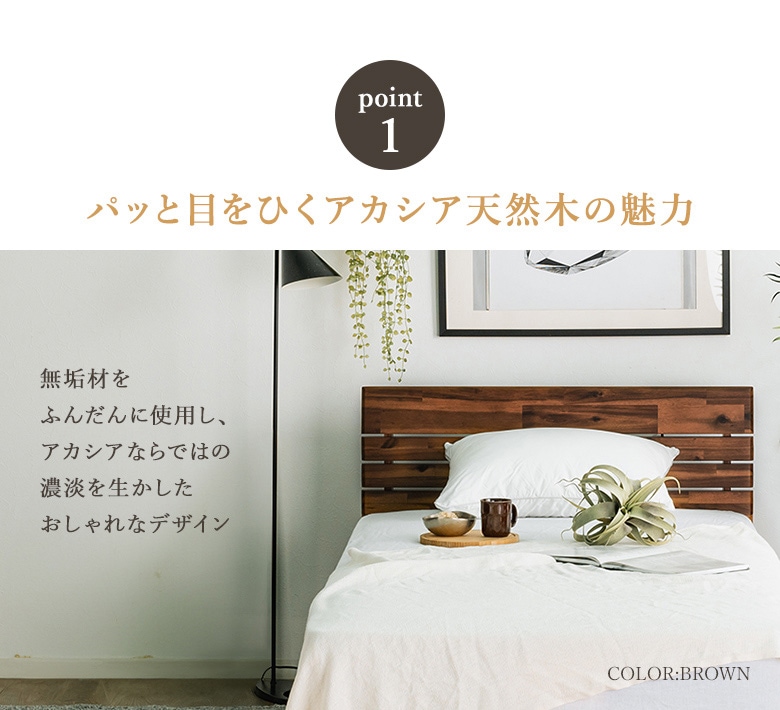 フレーム:アカシア無垢、アカシア突板化粧繊維板 床板:すのこ 塗装:ラッカー塗装 |