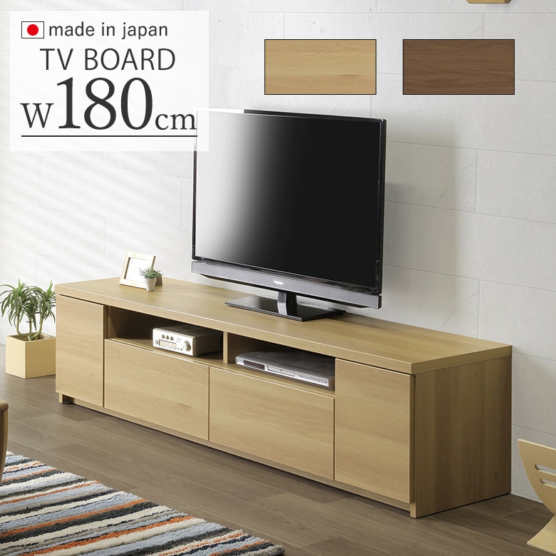 180テレビボード 幅180cm 日本製 強化紙 ナチュラル ブラウン 完成品 日本製【引出しはフルオープンレール使用】