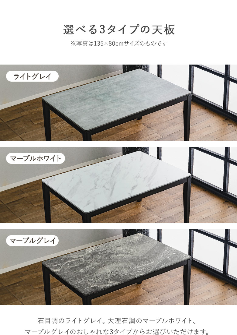 天板:ホワイト、ライトグレイ、グレイ / 脚部:黒 |