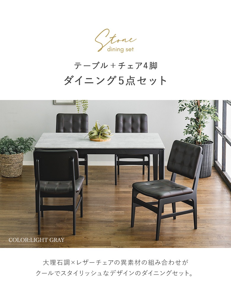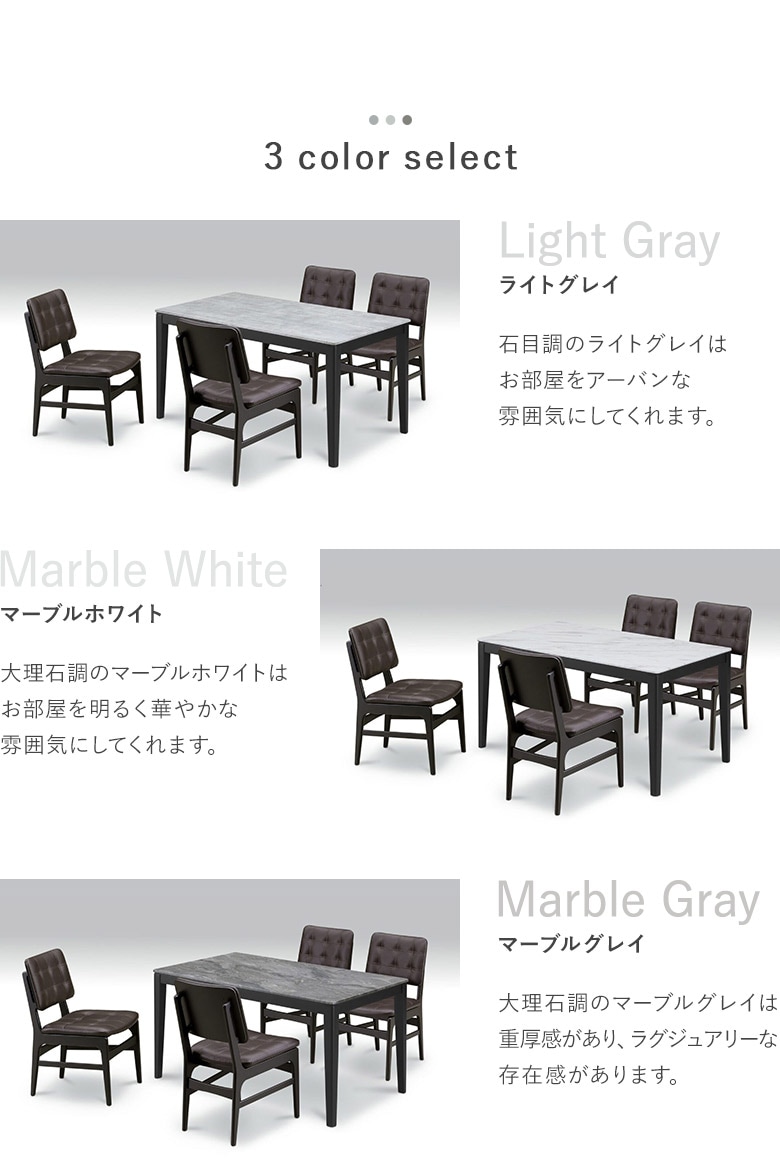 ダイニングテーブルセット 5点セット 135×80 ダイニングセット 大理石調 石目調 高圧メラミン天板 熱・傷に強いHPL ホワイト/ライトグレイ/グレイ チェアPVC