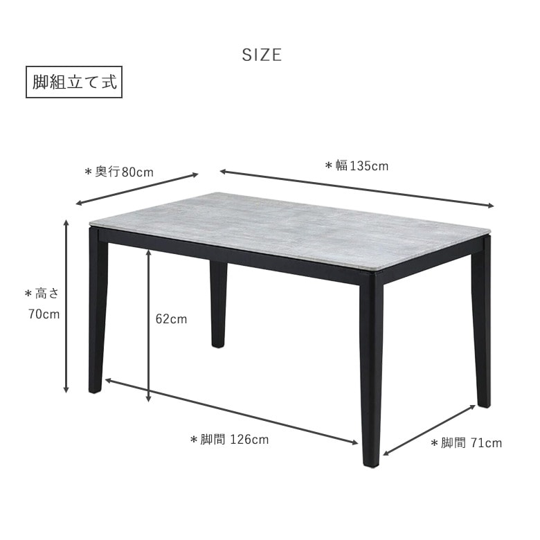 テーブル:幅135×奥行80×高さ70cm 天板厚み:2cm チェア:幅47×奥行57×高さ82(座面高43)cm |