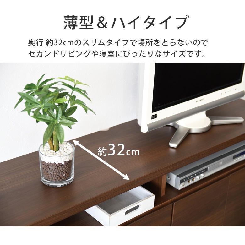 ・完成品 ・日本製 ・可動棚付きでリビング収納としてもご使用いただけます ・コード穴付き ・薄型&ハイタイプのテレビ台 ・奥行浅い(約32cm)薄型設計なので、省スペースで場所をとりません |
