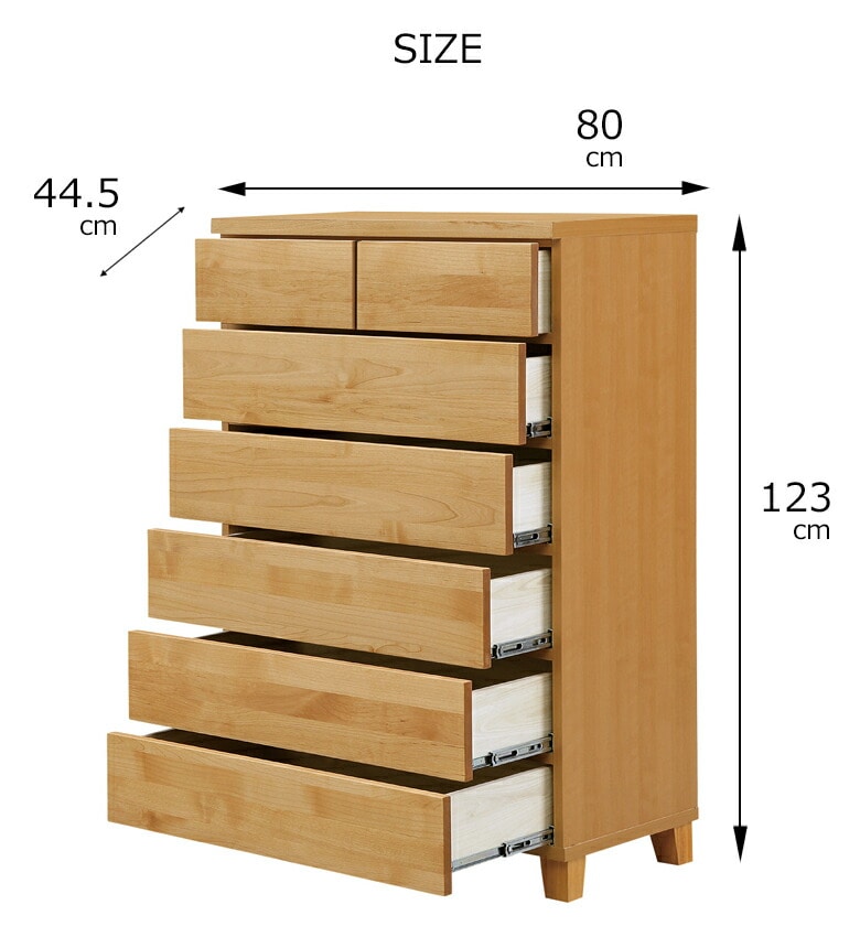 アルダー材 80ハイチェスト 脚付きチェスト 幅80cm アルダー 木製 北欧 オイル塗装 引出し箱組 ナチュラル 完成品 日本製 大川家具
