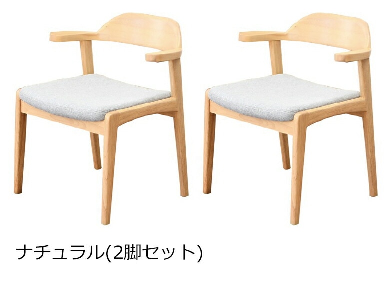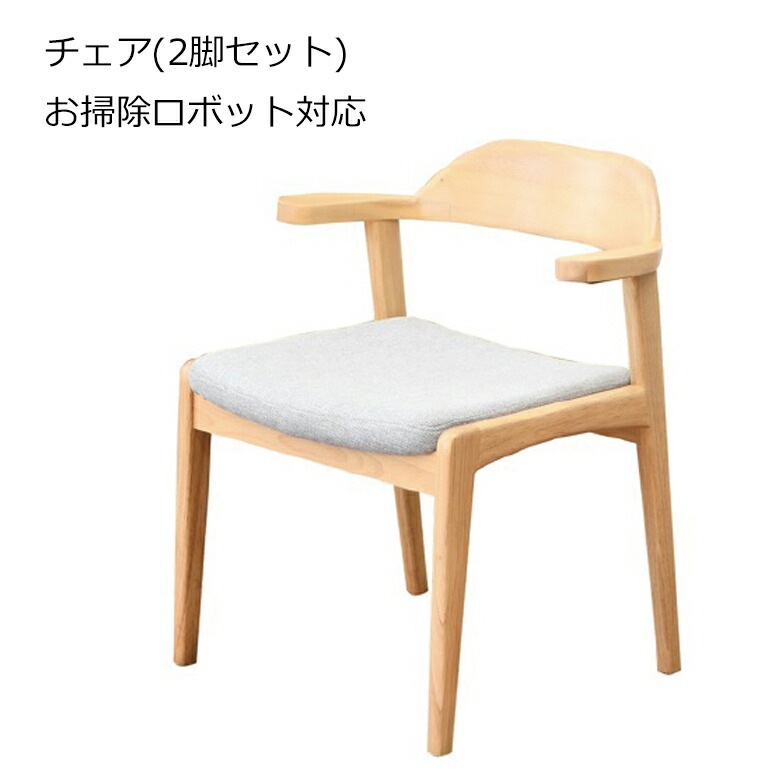 お掃除ロボット対応 ダイニングチェア 2脚セット 【テーブルに椅子を掛けられる】テーブル肘置き ナチュラル ラバーウッド/ファブリック 北欧 おしゃれ 完成品